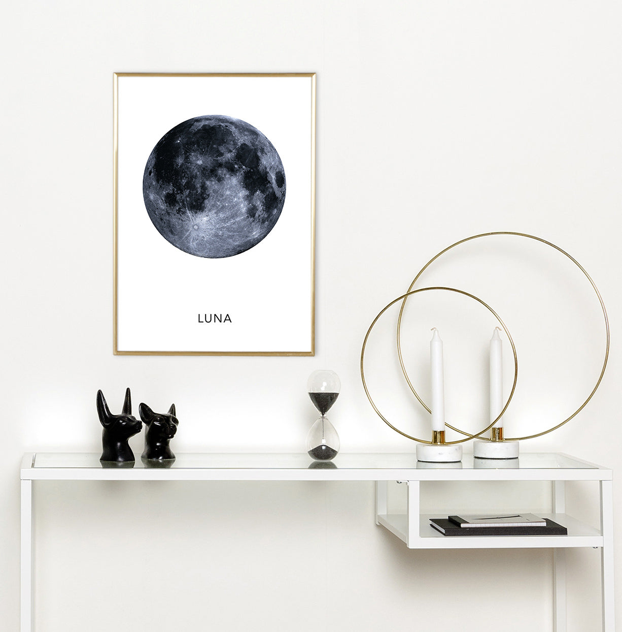 Look around the world and you will see that the absolutely finest artworks are naturally here for you to enjoy. Here we have the wonderful moon printed along with its Latin name Luna.