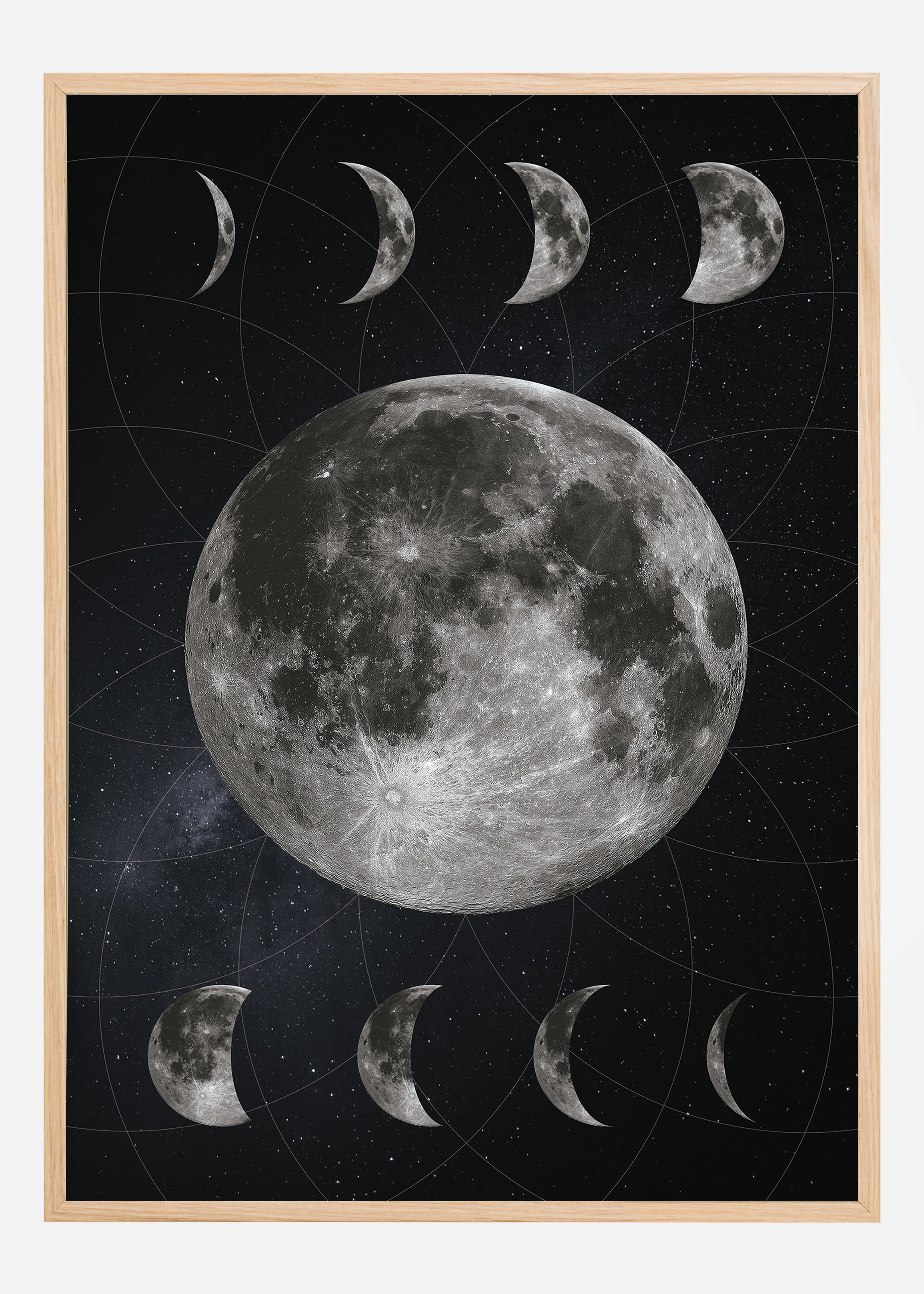 Which is your favourite among the celestial bodies? This stylish print depicts our beautiful moon and all its phases as they appear depending on whether you are on the Earth's northern or southern hemisphere. The moon itself is in grayscale, while the starry sky behind leans slightly towards blue.