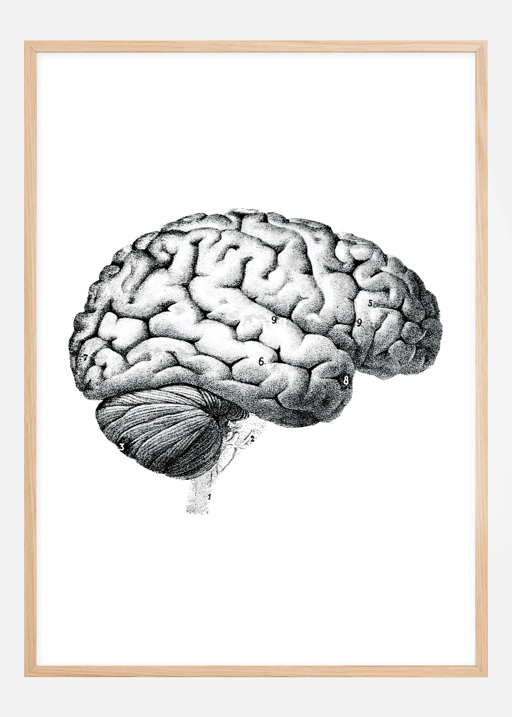 Make your interior more exciting with various school prints with a vintage feel! This poster is a copy of an old drawing depicting a brain with numbers at the different parts. The drawing is taken from a textbook on anatomy. Since it is black and white, it is easy to match with a frame that goes well with the rest of the decor. The poster is available in a variety of sizes so you can easily find one that fits your home.