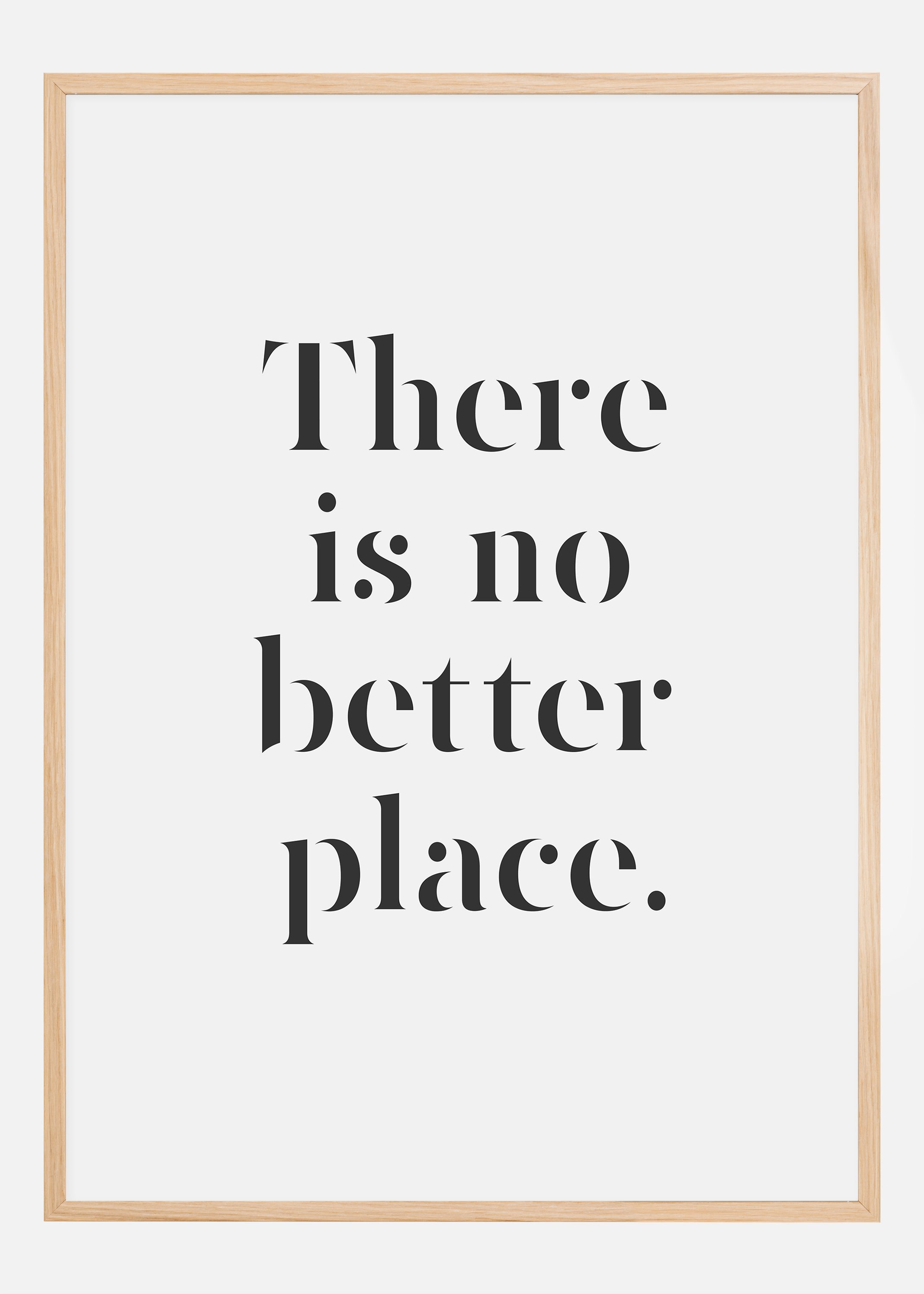 Discover our minimalist and stylish poster that conveys a sense of tranquility and homeliness with its simple message "There is no better place". This modern print is perfect for those who appreciate Scandinavian design and clear, yet powerful messages in their home decor. The design, which is limited to a classic black text on a white background, becomes a timeless interior detail that fits in both a modern and a more traditional home.