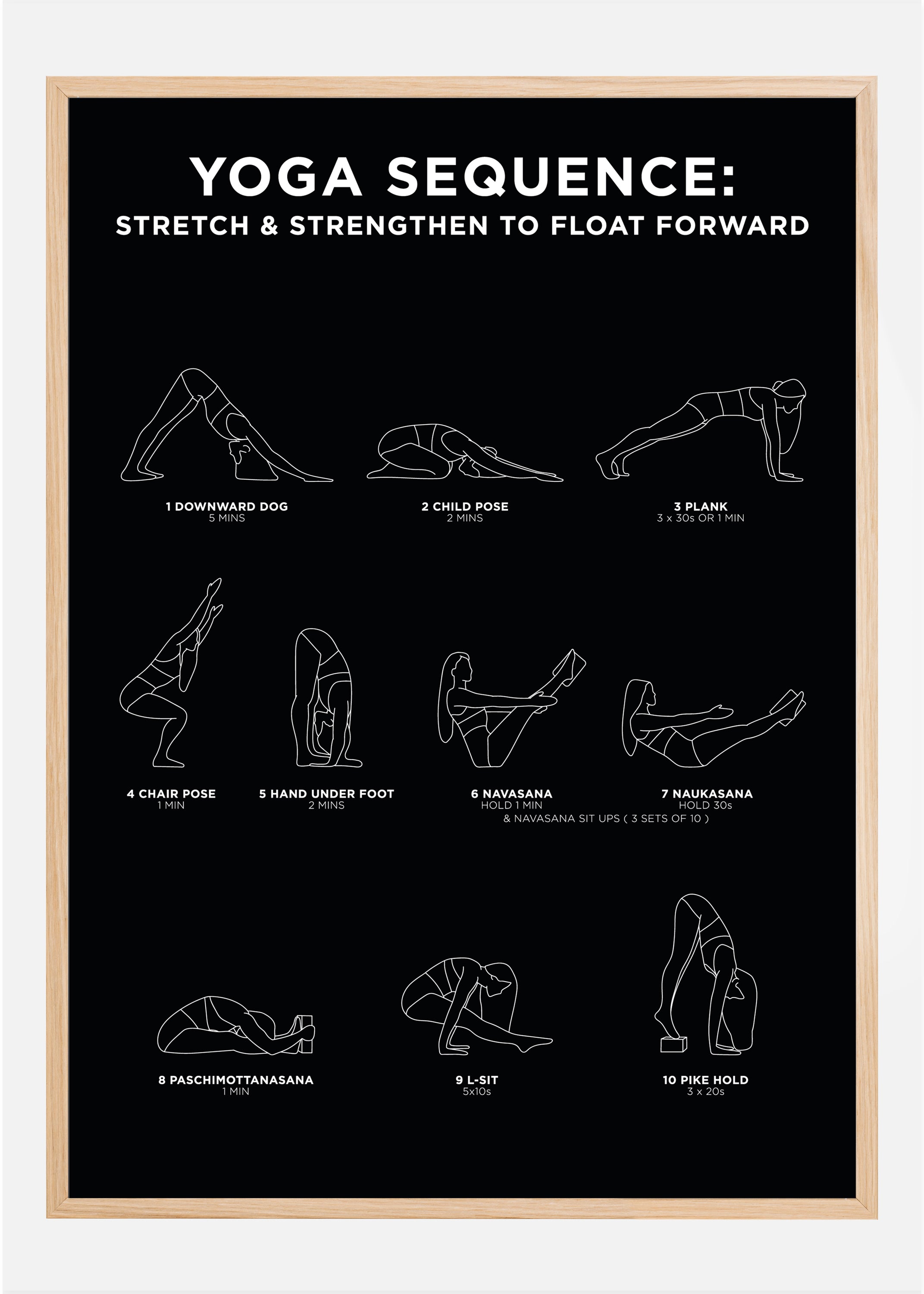Yoga Sequence - Stretch & Strengthen To Float Forward - Black Poster